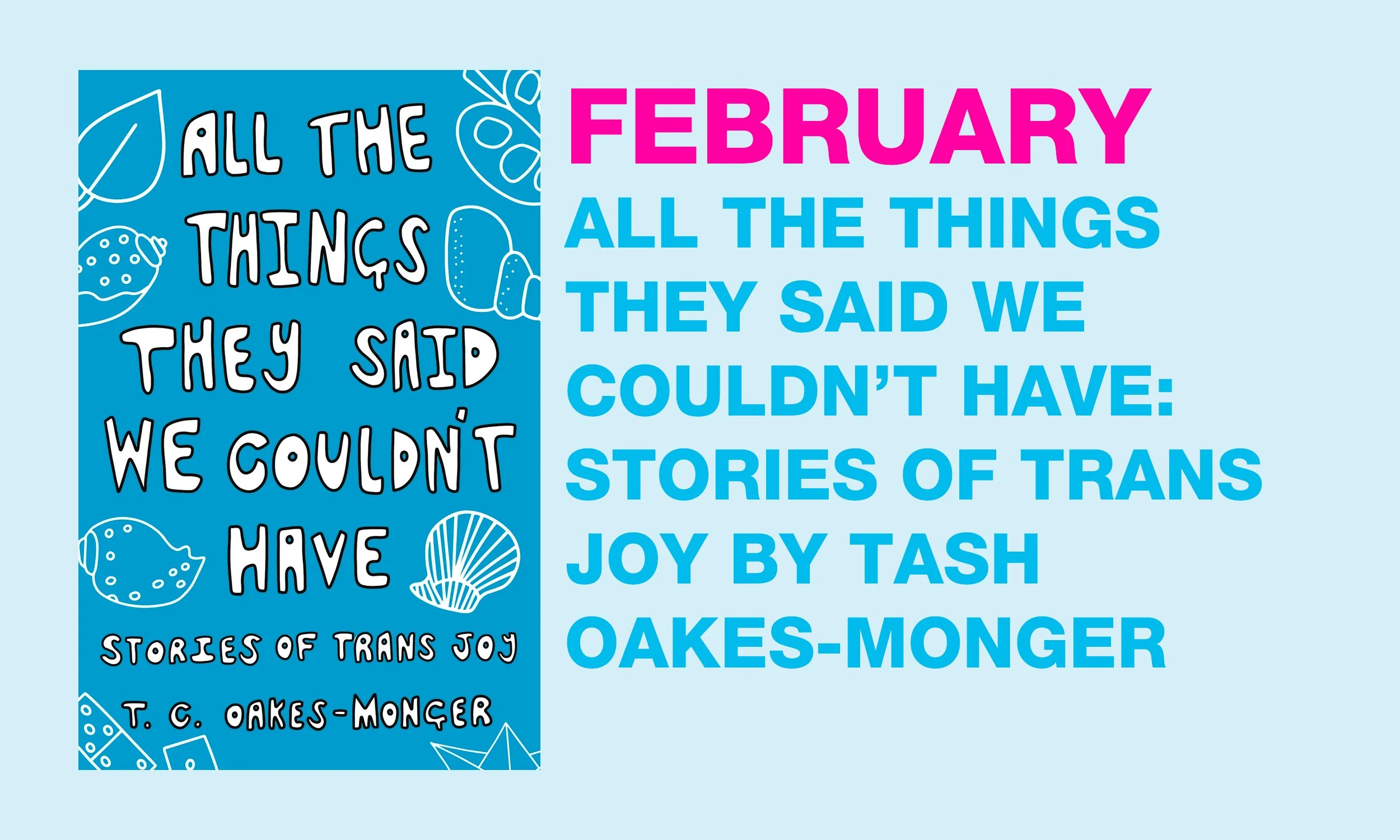 Join the CAMP book club! February’s book is All The Things They Said We Couldn’t Have: Stories of Trans Joy by Tash Oakes-Monger.